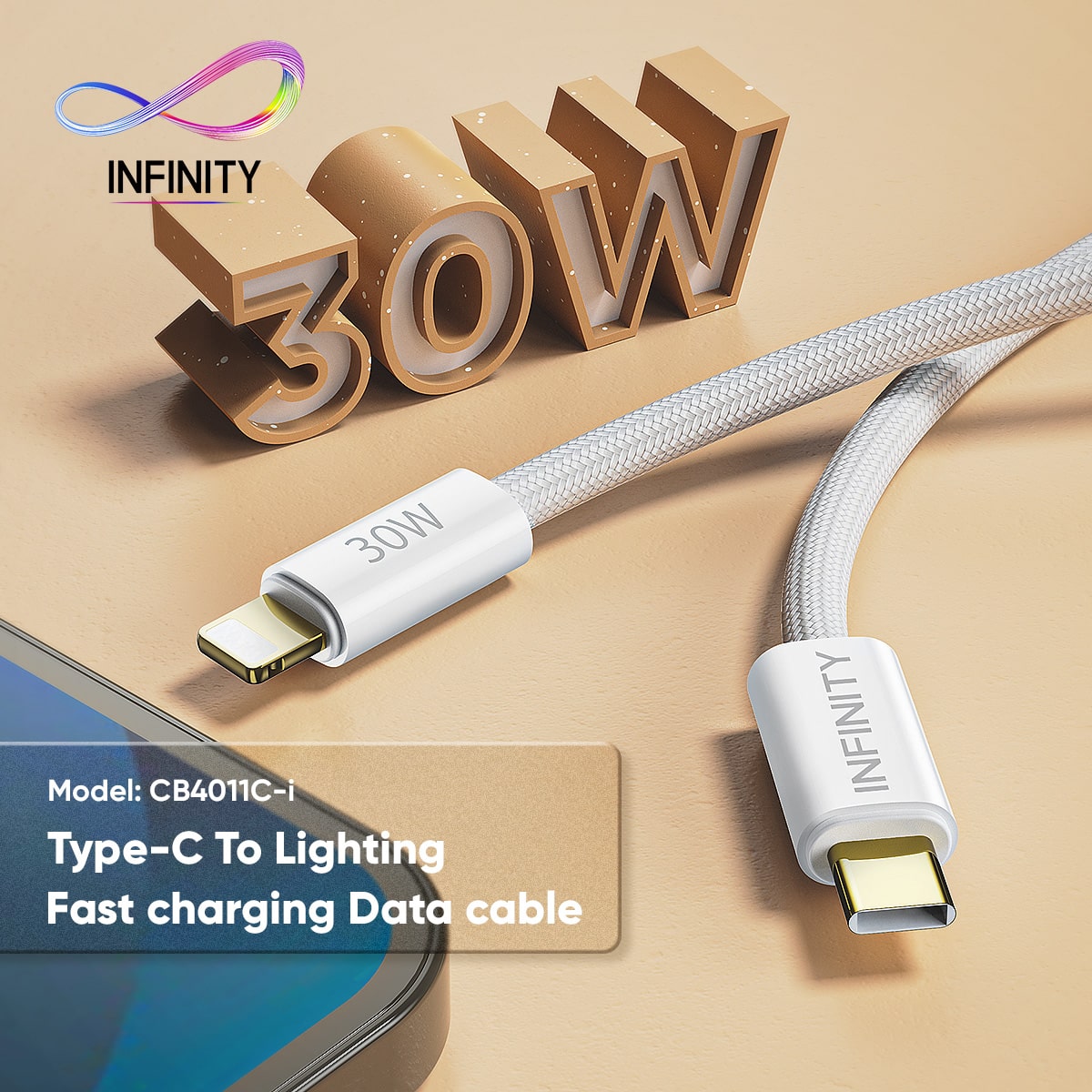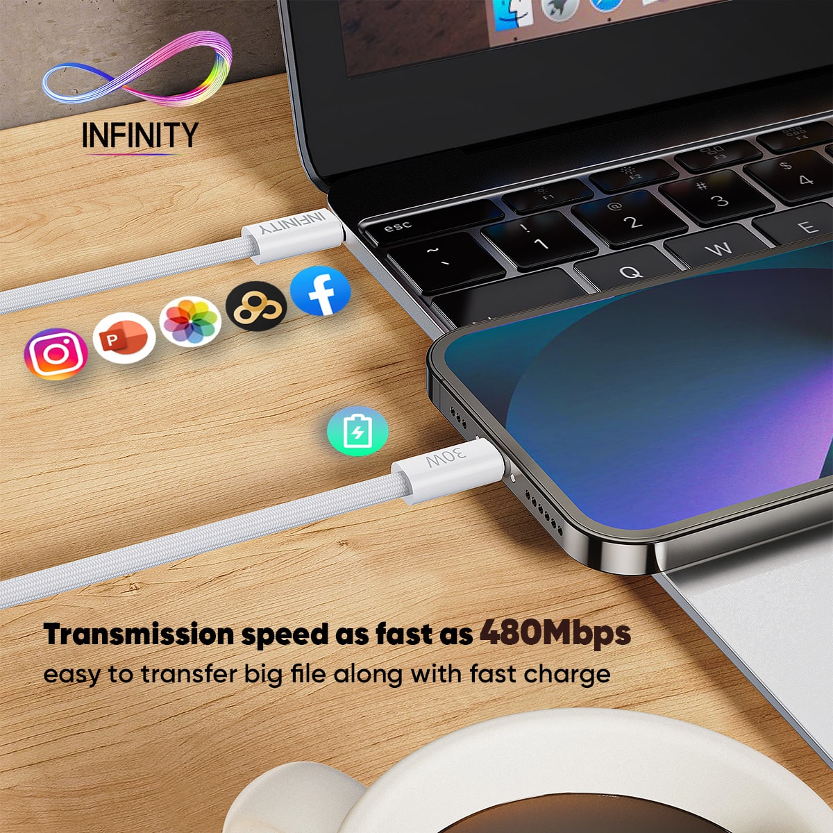 This Type-C to lighting fast charging data cable has transmission speed as fast as 480Mbps that makes easy to transfer big files along with fast charge.